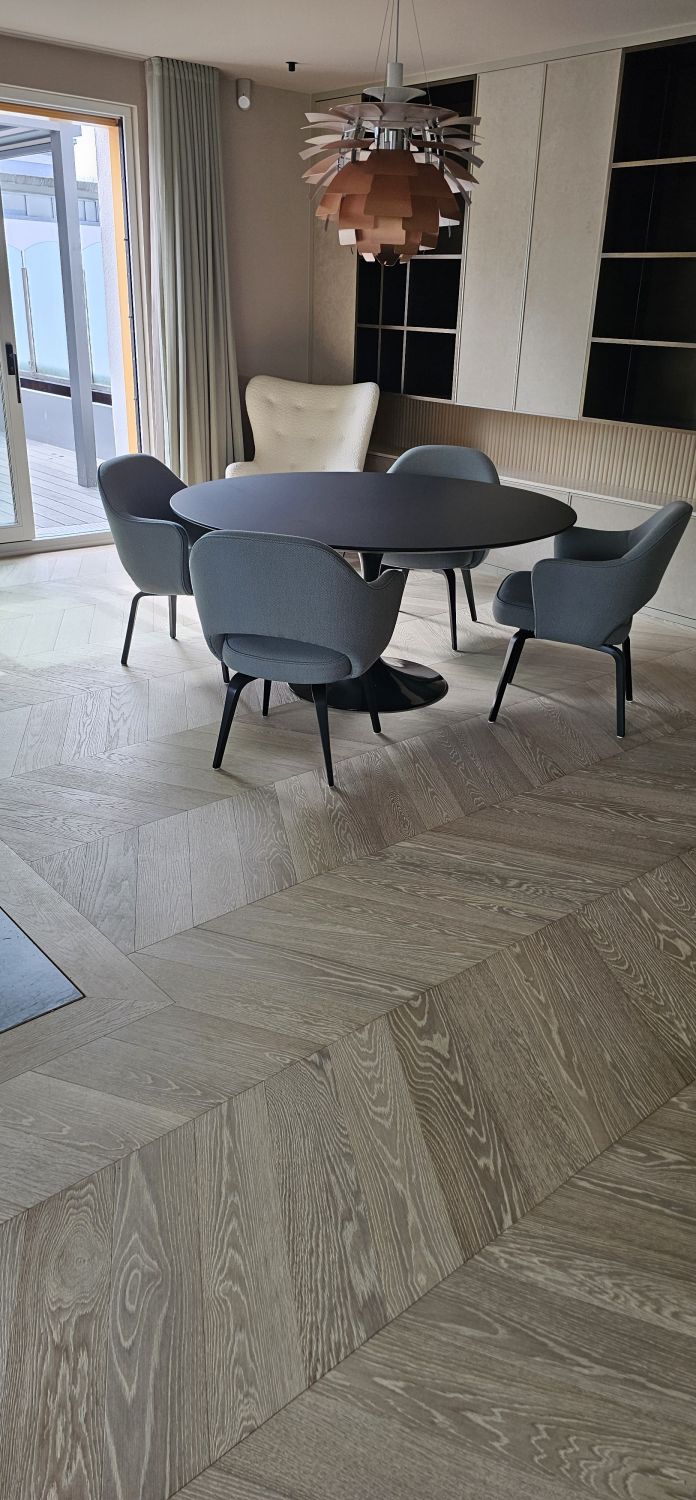 Dieser Boden ist in einer Preisklasse weit weg von anderen Parkett-Produkten, aber er ist jeden Euro wert. Mit der weltweit größten Farbauswahl können Sie nicht nur Ihren Parkettboden, sondern auch Ihre Türen, Wände, Einbaumöbel und Akustik-Flächen mit der gleichen Schotten&Hansen Oberflächenbehandlung versehen lassen, damit Sie ihr gesamtes Interieur auf Ihre Vorstellungen farblich abstimmen können.